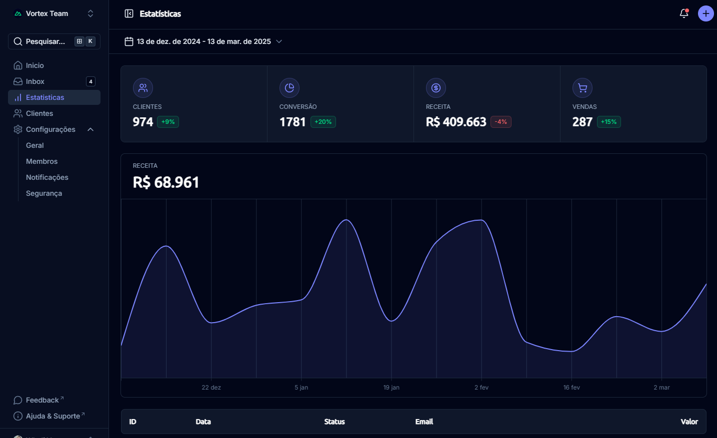 - Relatórios de performance da equipe